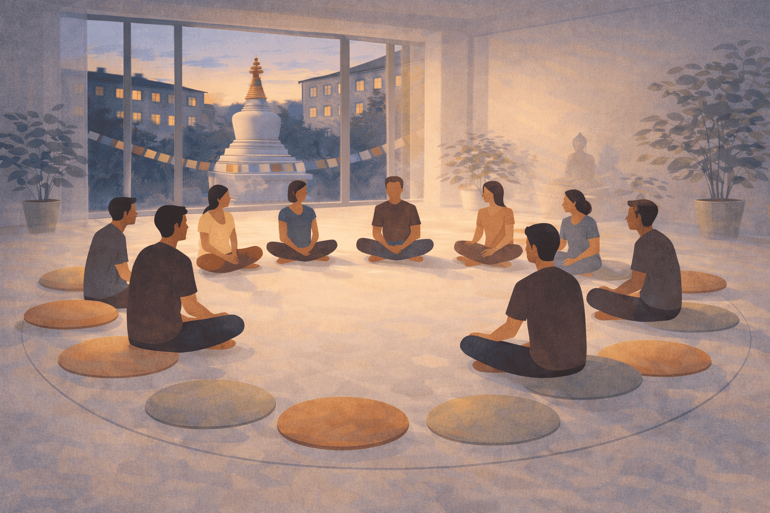 Wir meditieren gemeinsam, sprechen über grundlegende Themen der buddhistischen Lehre und nehmen einfache Übungen mit nach Hause, um sie im täglichen Leben anzuwenden. Jede Sitzung bietet auch Raum für Fragen, Austausch und gemeinsames Nachdenken – so entsteht Schritt für Schritt eine lebendige Praxis, die Meditation, Einsicht und Alltag verbindet.