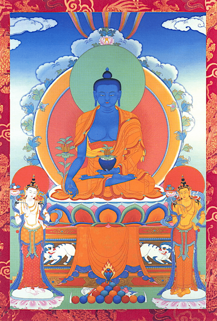 Der Medizinbuddha mit seiner lapislazublauen Erscheinungsform verkörpert heilende Qualitäten. Die Praxis hilft uns bei der Heilung von körperlichen Krankheiten und auch bei der geistigen Entwicklung. Gleichzeitig können wir die Fähigkeit entwickeln, andere Menschen in ihrem Heilungsprozess zu unterstützen.